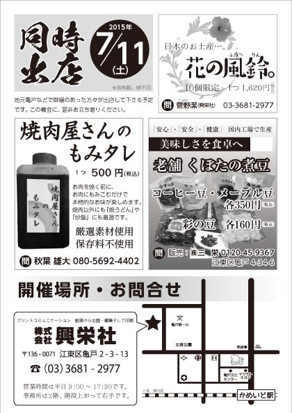 来月は、亀戸2丁目団地のお祭りへお邪魔させていただく予定となっておりますので、是非お立ち寄りください。