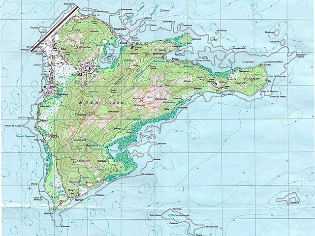 チューク州のウエノ島は周囲が18kmで、神津島の22kmとほぼ同じくらいの大きさといえ、どことなく島の形も似ている気がします。